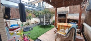 En la planta superior, se ubican tres dormitorios, siendo el dormitorio principal un verdadero refugio con baño en suite y un balcón privado que ofrece vistas agradables. El segundo dormitorio también cuenta con balcón, mientras que el tercer dormitorio es perfecto para niños o como oficina. Además, una buhardilla de 30 m² añade un espacio adicional que se puede adaptar a tus necesidades.